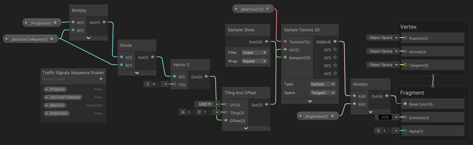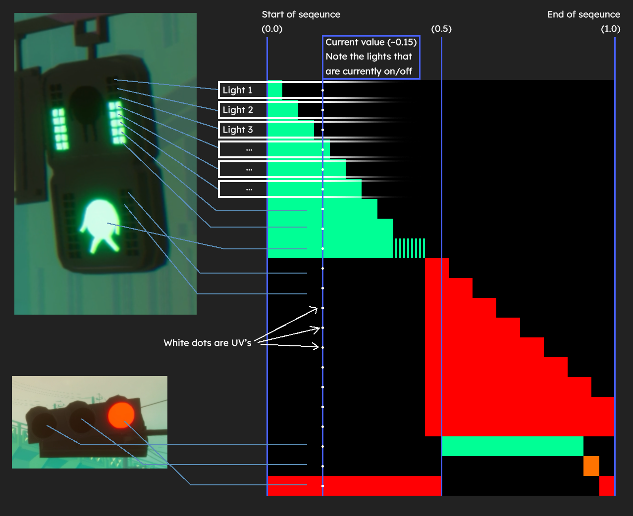After seeing traffic/pedestrian lights in Japan, I thought it would be an interesting exercise to encode the whole sequence into a texture and run it using a shader.