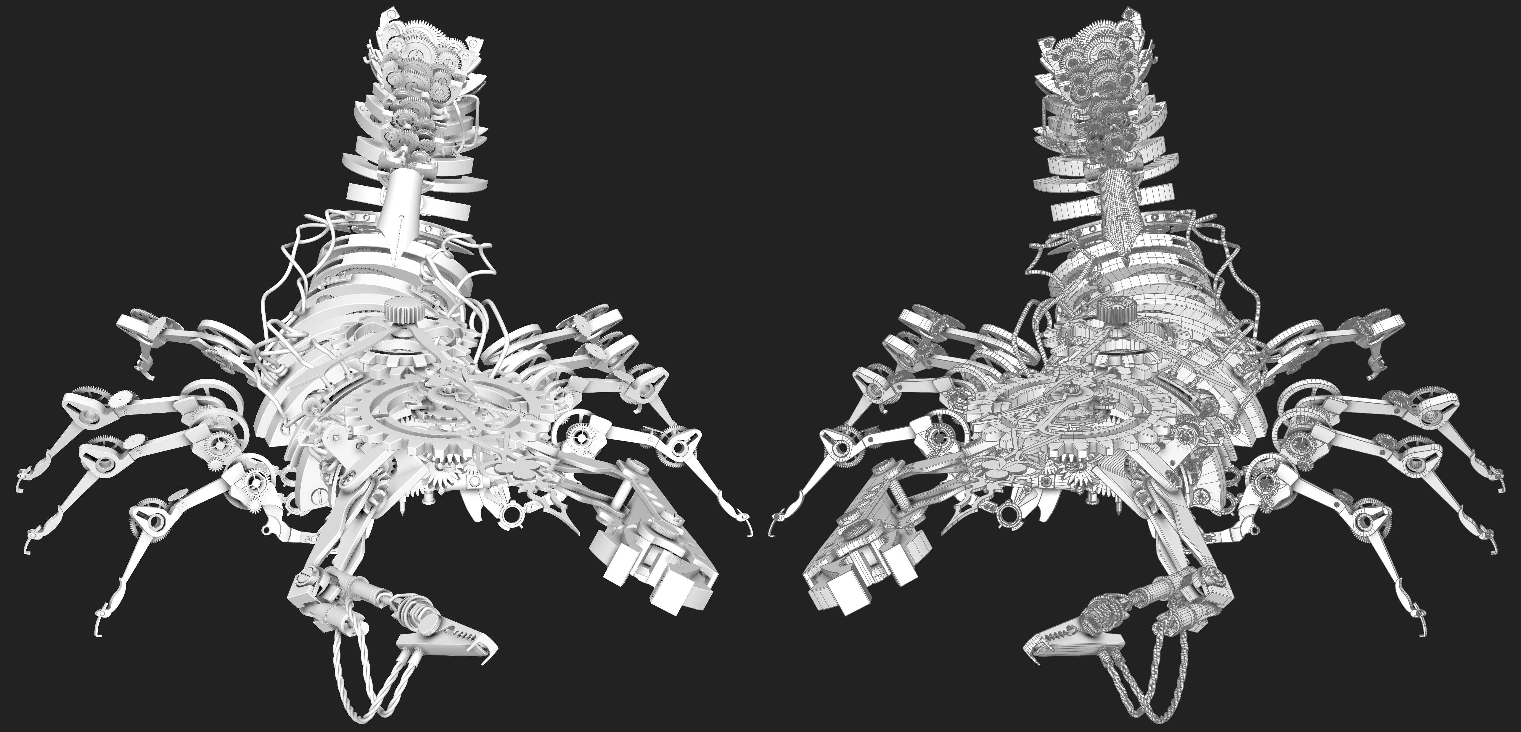 I originally modelled this clockwork spider over 3 days for a short challenge. I gathered references of various clock and watch parts, and pieced them together to create the model. The final product was 3 renders (using V-Ray + compositing in After Effects)